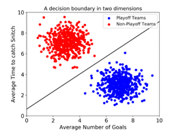 또한 서포트 벡터 머신(Support Vector Machine, 이하 SVM) 알고리즘이 있습니다. 위의 그림과 같이 데이터 속성 간에 절정 경계(Decision Boundary)라고 하는 분류를 위한 선을 정의하는 모델입니다. 데이터가 2개의 속성을 띠고 있다면 절정 경계가 선으로, 3개의 속성을 띄고 있다면 하나의 평면으로 이루어져 있을 것입니다. 절정 경계와 데이터 값들의 거리, 즉 마진을 최대화 하는 것이 최적의 절정 경계라고 말할 수 있습니다.
