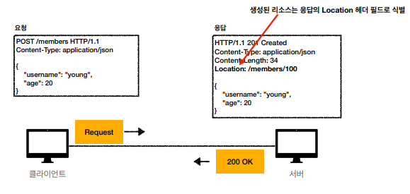 요청을 성공해서 새로운 리소스가 생성되는 경우, 해당 코드를 반환한다. 주로 POST 요청에 대해 사용되며, 생성된 리소스는 Location 헤더 필드를 통해 식별한다.