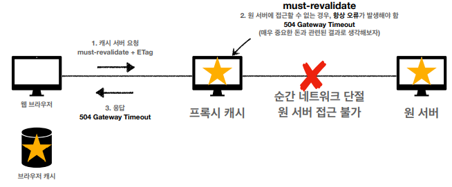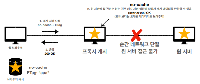 - 어떤 이슈로 인하여 프록시 캐시 서버와 원 서버가 서로 통신이 안될 수 있다.