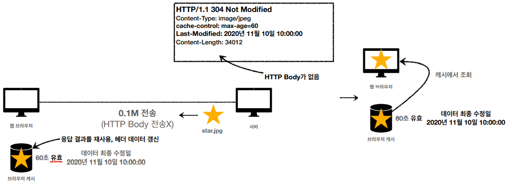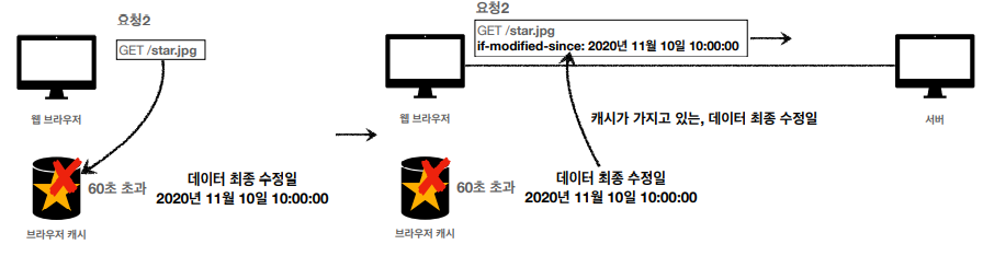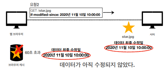 - 이때, if-modified-since: 2020년 11월 10일 10:00:00 이라는 HTTP 헤더를 추가해서 서버에 요청한다.