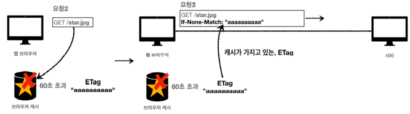 - 단순하게 ETag를 보내서 같다면 유지시키고, 다르면 다시 응답받으면 된다!
