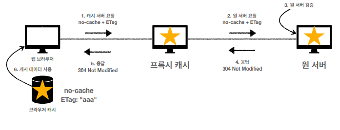 1. 웹 브라우저에서 no-cache와 함께 캐시를 서버에 요청한다.