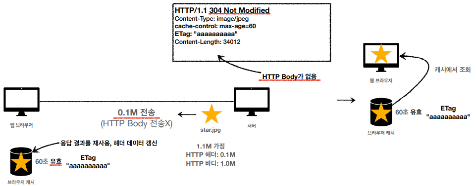 그런데 위 경우도 결국 같은 star.jpg를 다시 네트워크에서 다운로드 받는 것이다(변경되지 않았다는 가정 하에). 데이터가 변경되지 않았어도 같은 응답을 가져오기 때문에, 조금 비효율적인것 같다...
