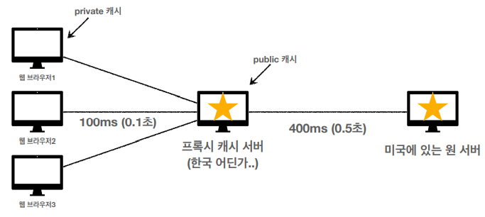- 웹 브라우저가 저장해야 하는 캐시를 private 캐시라고 한다.(기본값)