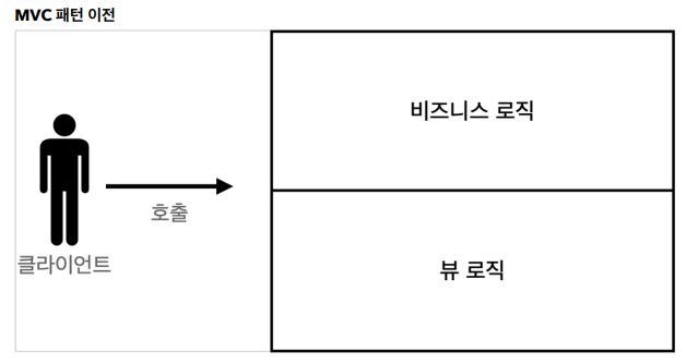MVC 패턴을 도입하기 전에는, 위의 그림처럼 비즈니스 로직과 뷰 로직이 같이 존재하였다.