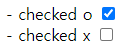 HTML의 체크박스 같은 경우 checked라는 속성이 있기만 해도 체크가 된다. 이때, 속성의 값과는 전혀 관계가 없다. 위 예시에서 checked="false"로 지정했음에도 불구하고, 체크 표시가 있게 된다.