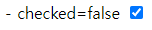 - checked=false <input type="checkbox" name="active" checked="false" /><br/>
