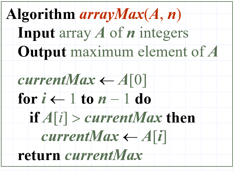 아래는 의사코드로 배열의 최대값을 지닌 element를 찾는 알고리즘을 표현한 것입니다.