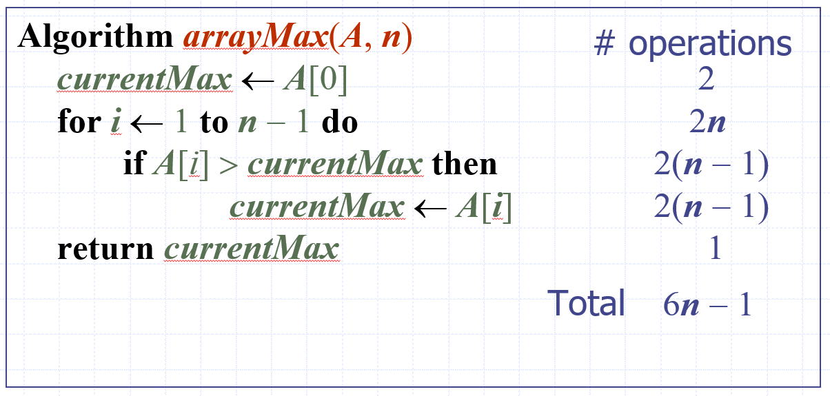 구하고자 하는 알고리즘의 연산의 개수를 새는 과정을 요약하면 다음과 같습니다.