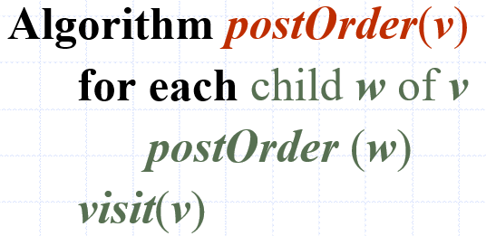 Postorder Traversal(후위 순회)는 자식 node를 모두 방문한 후, 자신을 방문하는 구조로 이루어져 있습니다.