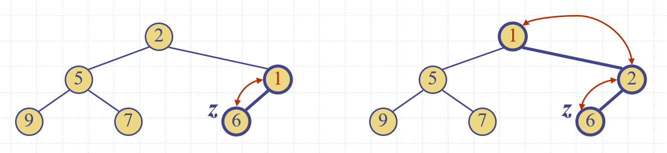 2) root보다 자식 node가 작다면, 둘의 위치를 교환한다.