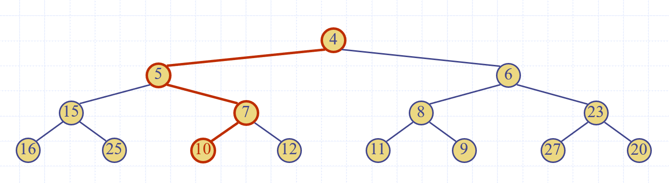 3) root에서 downheap실행, heap의 규칙을 성립시킨다