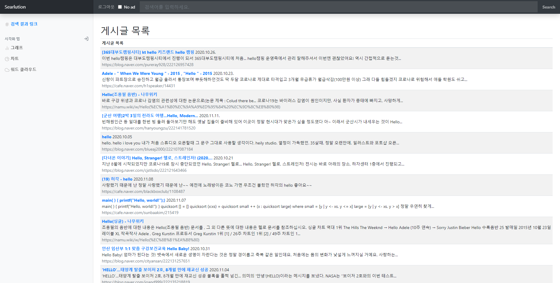 비록 초반에 계획한 하둡을 통한 데이터 처리로 광고성 키워드를 제거하는 결과물을 완성하지는 못하였으나, 그래도 어느정도 완성된 결과물을 만들게 되었다.